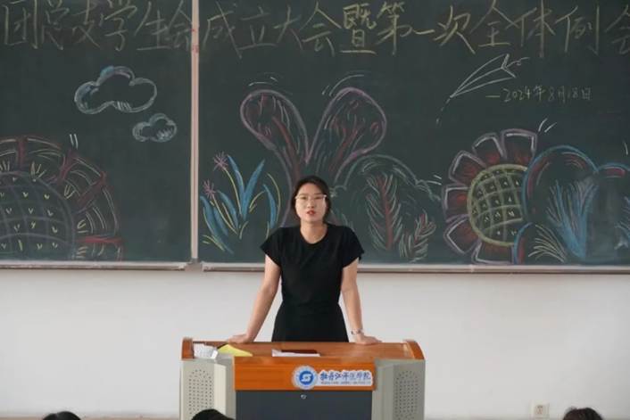 会议第二项,团总支副书记李美林对团总支进行介绍。她提到文学院团总支作为学院共青团工作的核心力量,要秉承服务大局、服务青年的宗旨,积极举办文化活动与实践项目,强化团支部凝聚力为文学院学生搭建成长平台。同时,团总支副书记李美林和杨若彤展望了未来工作,提出加强对同学们的思想引领和组织建设,丰富团学活动,并承诺将虚心学习,不断创新,期望得到师生支持,共同推动团总支发展。