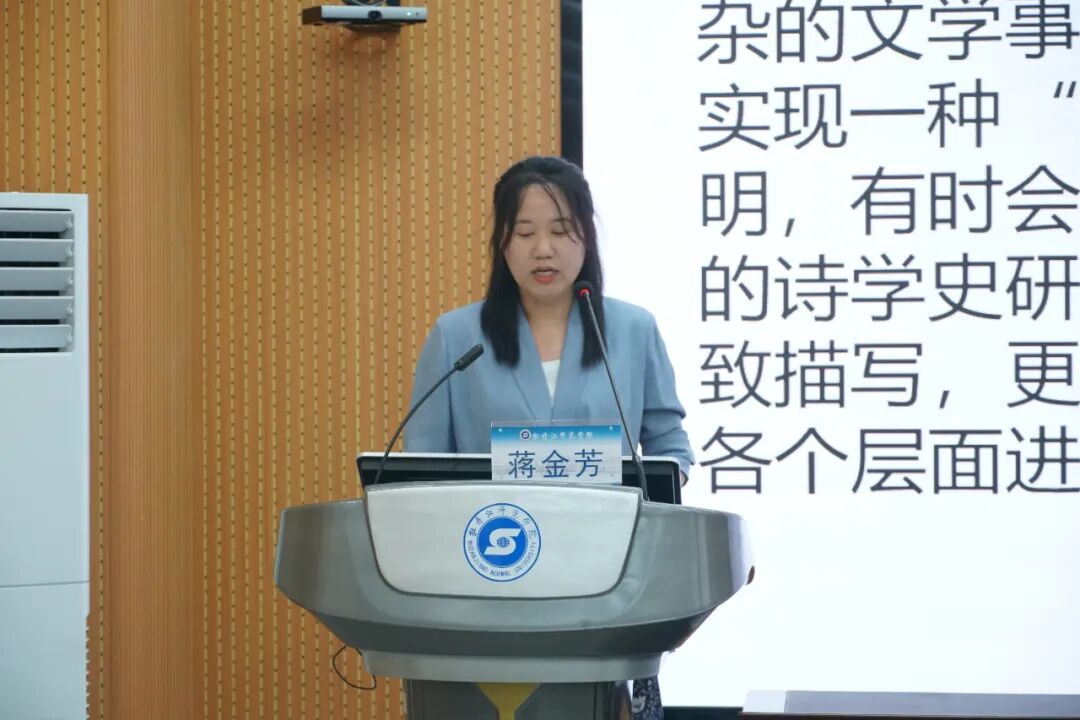 中国古代文学学科蒋金芳副教授作报告,报告题目是《<宋诗钞>与清初宋诗宗尚》,蒋老师认为《宋诗钞》的面世契合了京师之诗学趣尚,有力地推动了清初宋诗风的兴起,在浙派的发展历程以及清初诗坛具有非常重要的意义。宋娟教授担任评议人。
