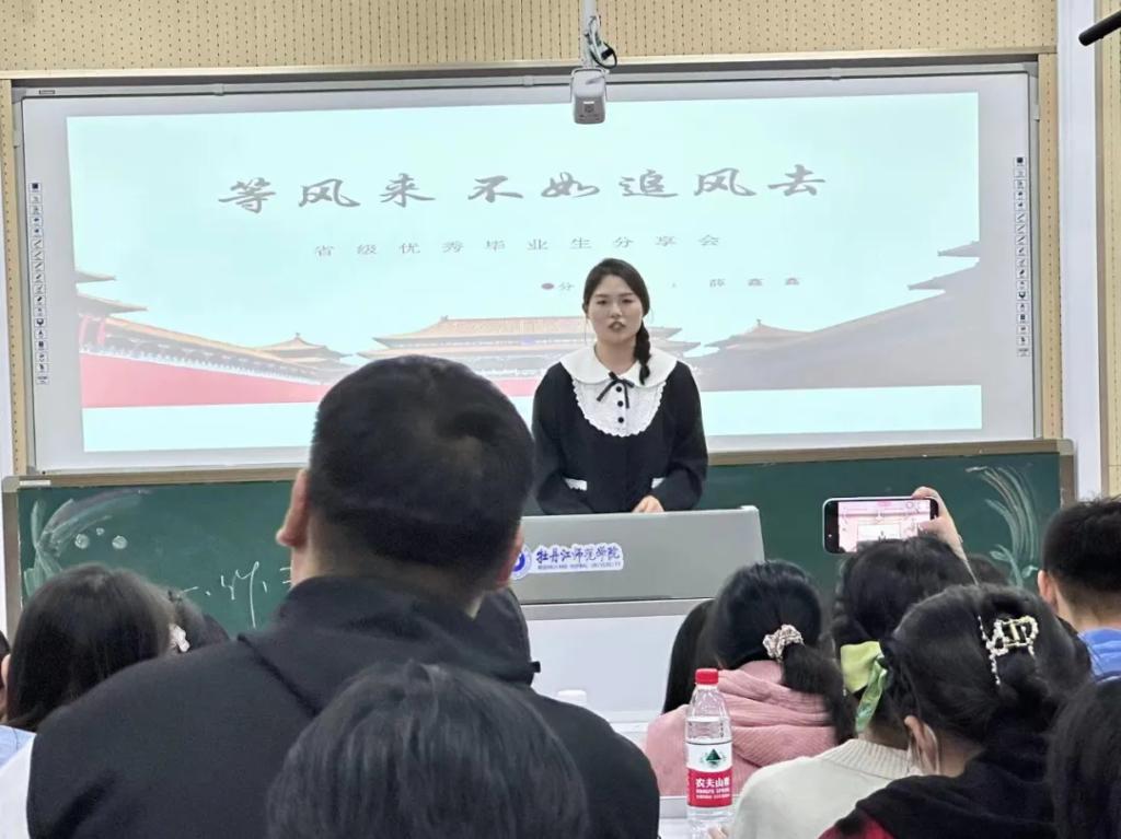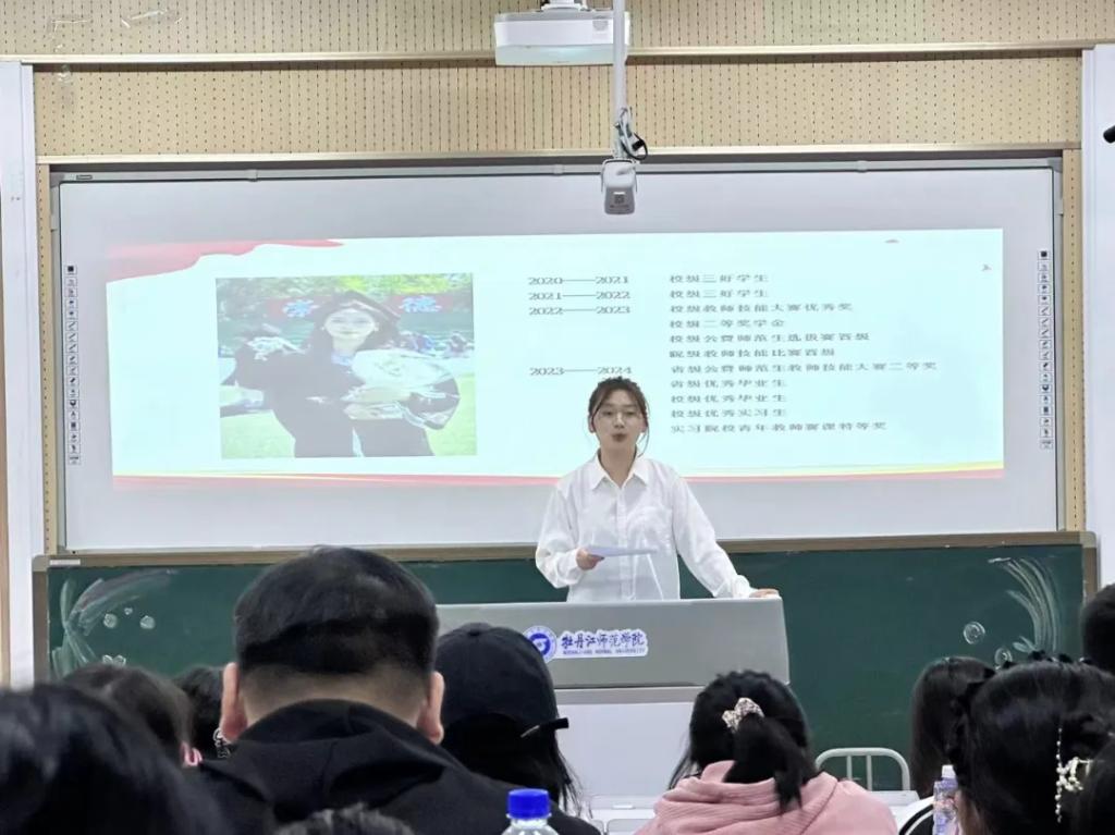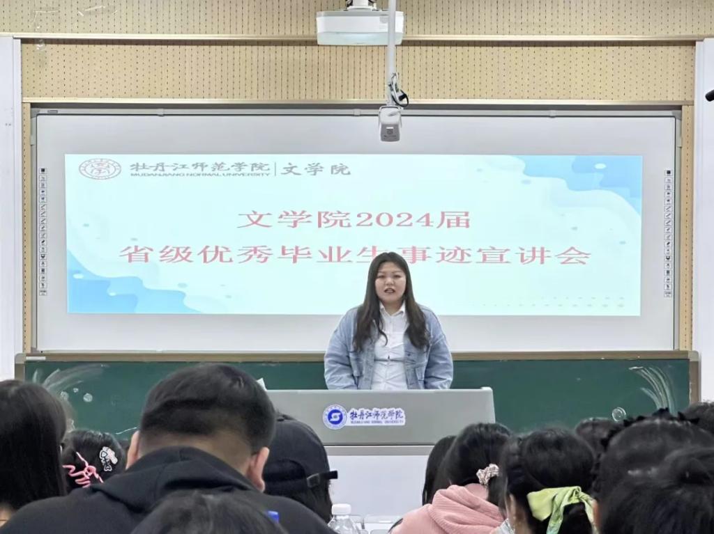 为进一步加强文学院学风建设,营造良好的学习氛围,充分发挥榜样引领示范作用,提升同学们的自律意识,激发同学们奋发向上、刻苦钻研的优秀品质,5月21日18:00,文学院在文科楼101举办了优秀毕业生分享会,本次分享会邀请了2020级8位黑龙江省省级优秀毕业生进行学习、工作等方面的经验分享,程雪佳老师主持本次会议。