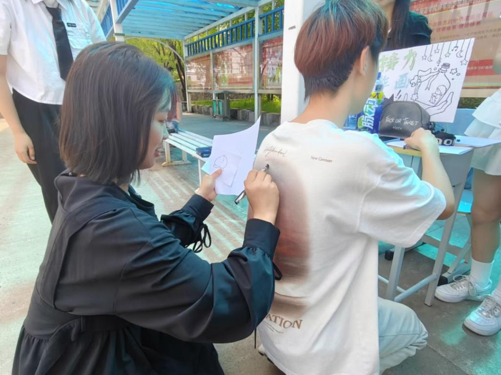 本次活动以游戏互动的形式进行,一共有八个游戏,分别是:接力作画、察言观色、我懵了、一心二用、速记速答、跳跳乒乓球、心语信箱,生命礼物。在游戏的过程中,同学们释放自我,热情高涨,配合默契,为此次活动注入了别样的青春与活力。在活动“奖励”环节,同学们表现自我,展示才艺,尽显自信风貌。