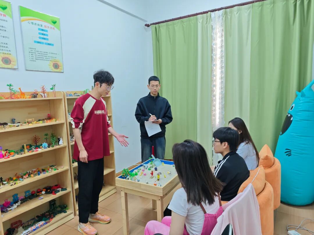 为进一步夯实文学院心理健康教育,帮助同学们释放压力、平复焦虑,提高学生了解  自我、悦纳自我的能力,文学院第十五届学生会心理服务部于5月22日在文学院心理咨询室(文科楼302)举办“心灵之旅:探索与成长”主题沙盘活动。本次活动由心理服务部部长郭昊主持。