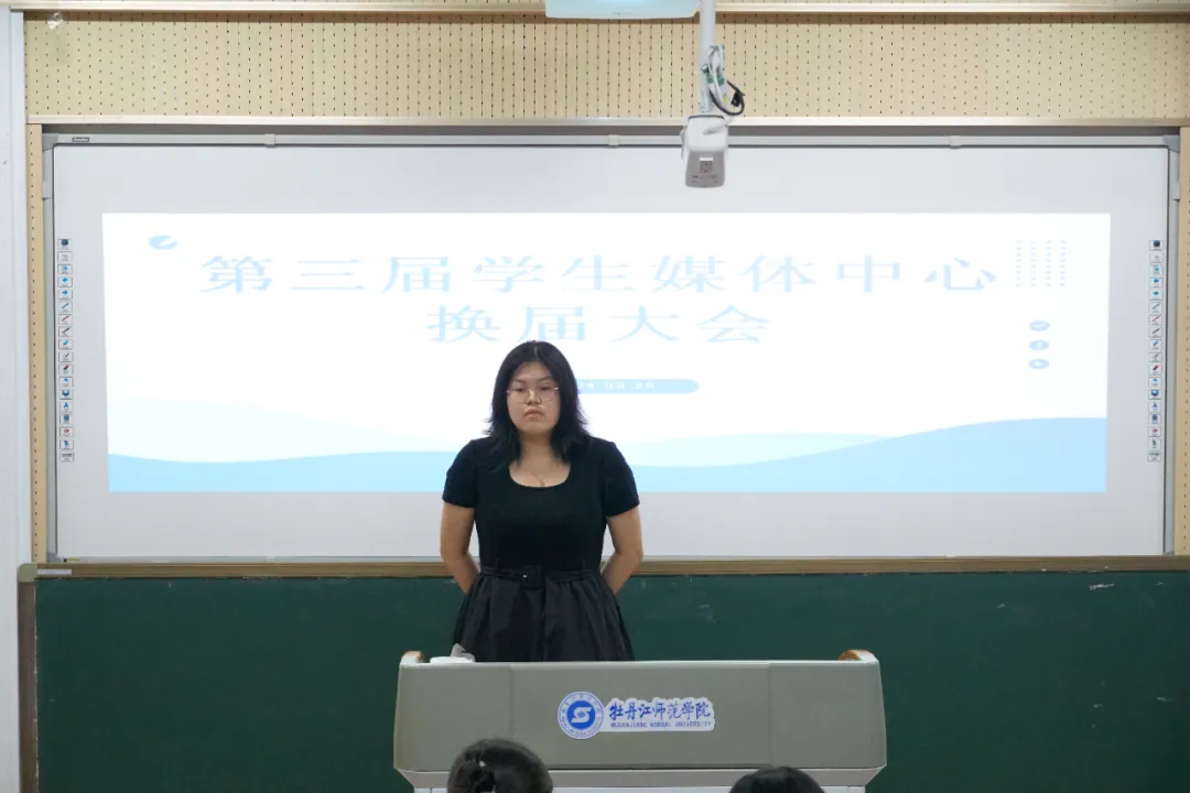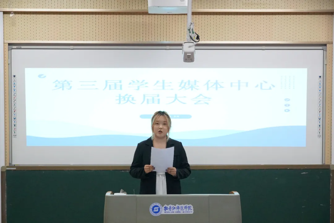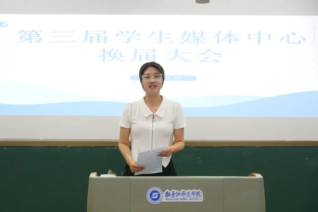 会议第三项议程,第三届学生媒体中心候选人进行竞选演讲。演讲内容主要从自我介绍、竞聘意向、竞聘优势、工作规划四个方面展开,充分展示了自己的才能与潜力,以及乐于奉献、服务同学、共创辉煌的决心与担当