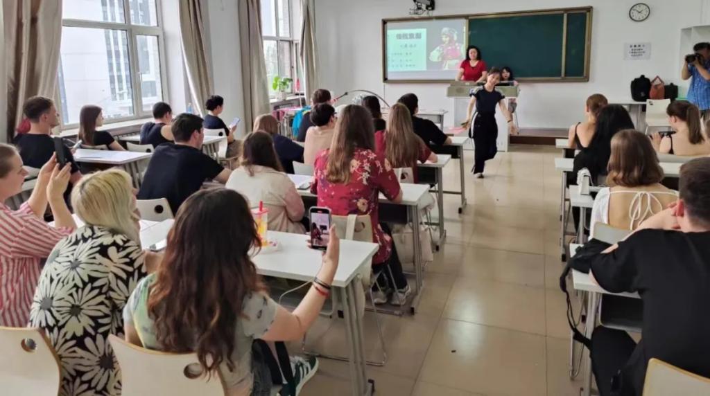 为了丰富留学生的课余文化生活,陶冶留学生的艺术情操,增进留学生对中国传统艺术的理解,我院于2024626日下午邀请牡丹江市京剧团二级演员周琳琳、徐丽杰、张静婷三名老师为我校留学生开展了京剧文化体验活动。我院教师代表杨佳鑫、薛靖怡、姜荣伟及墨林艺校校长张应力老师(特邀嘉宾)出席了本次活动。