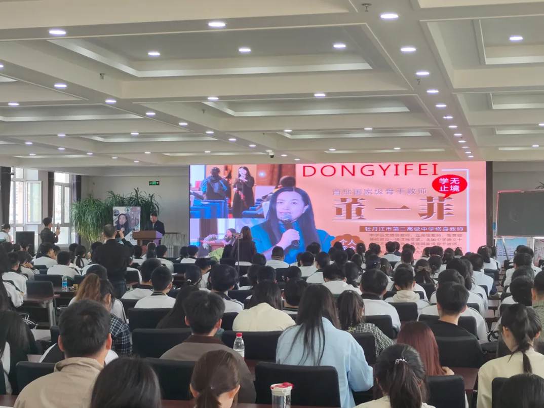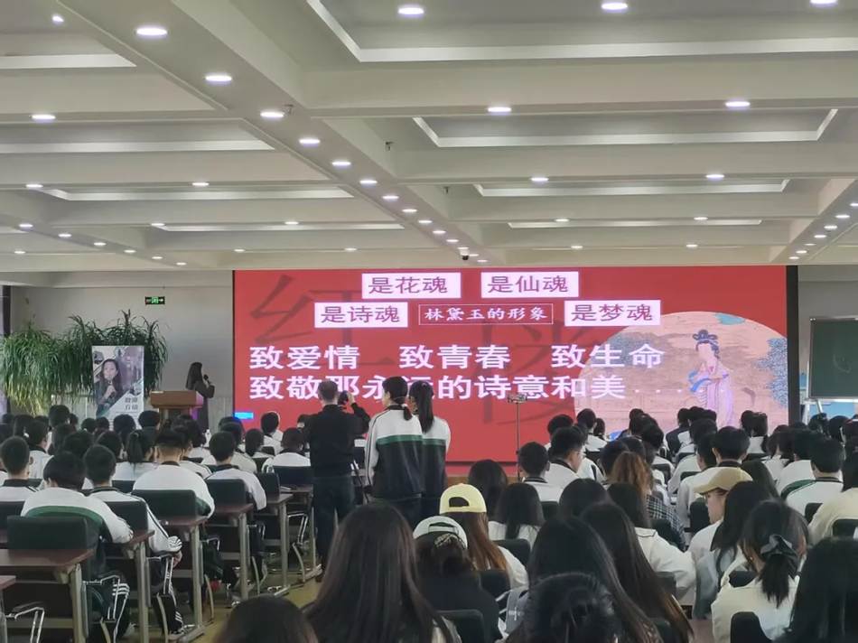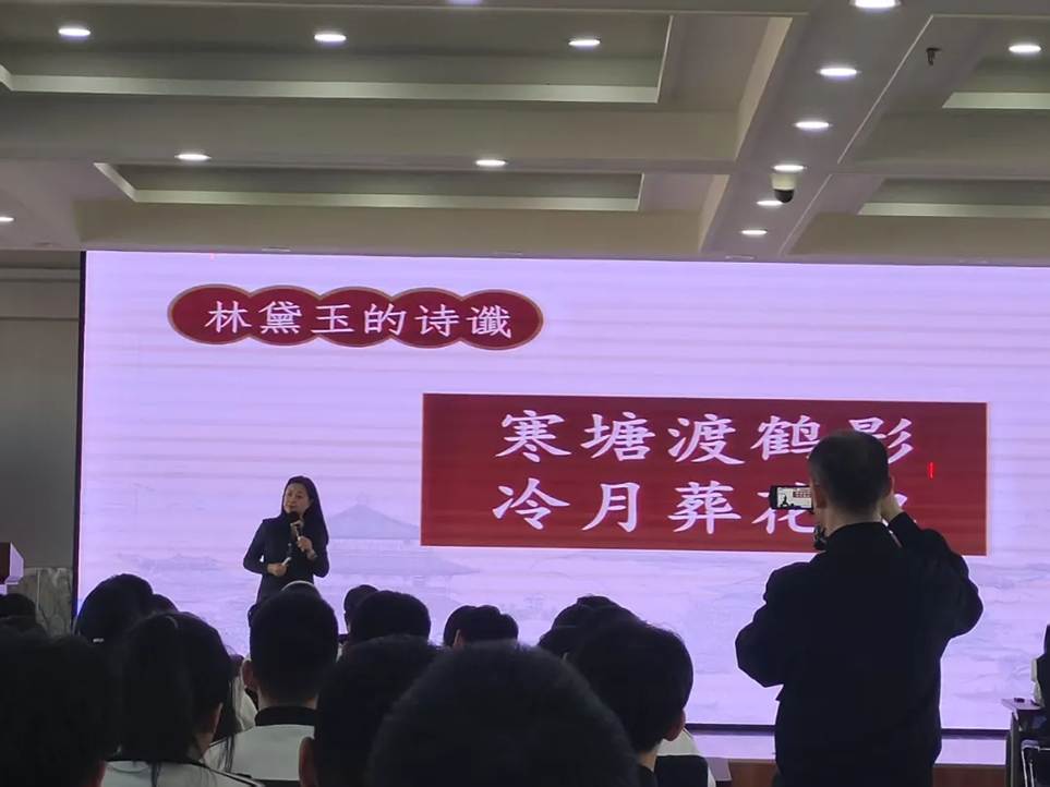 为切实加强汉语言文学专业师范生和学科教学(语文)专业研究生的职业认同,提升文学院学子的教育教学实践能力,2025年5月15日下午,文学院副院长、汉语言文学专业系主任付振华老师,比较文学与世界文学学科带头人王立宏老师,语文课程教学论教研室主任、学科教学(语文)学科带头人曲竟玮老师,带领学生前往牡丹江市第二高级中学开展教育见习活动,观摩中学语文特级教师,“诗意语文”倡导者董一菲老师讲授的《<红楼梦>整本书导读——林黛玉艺术形象赏析》公开课。文学院汉语言文学师范专业本科生和学科教学(语文)专业研究生共100余人参与了本次活动,与董一菲老师共赴一场“探究林黛玉艺术形象”的深度对话。